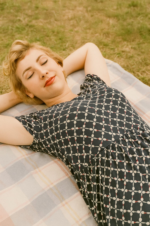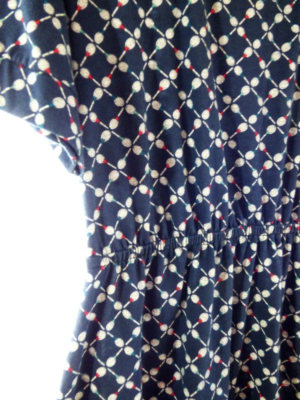 Vestido Sabatini, realizado en algodón con un leve agregado de lycra que aporta suavidad y elasticidad natural. Su estampa de raquetas rescata un espíritu retro–deportivo con aire lúdico. La cintura elastizada asegura comodidad y define la silueta, logrando un diseño fresco y versátil para el día a día.