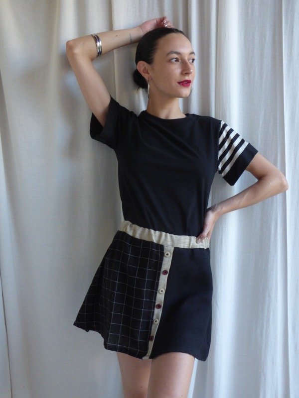 Confeccionada en jersey de algodón , esta prenda que contrasta con una espalda negra profunda, donde reside el detalle estrella: un aplique central en forma de corazón con trama rayada.