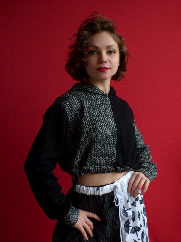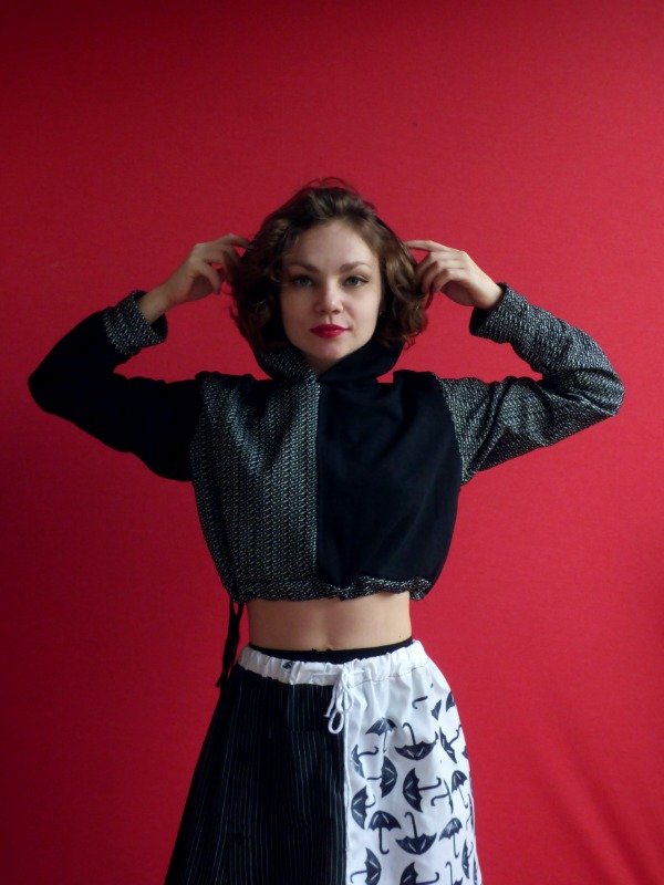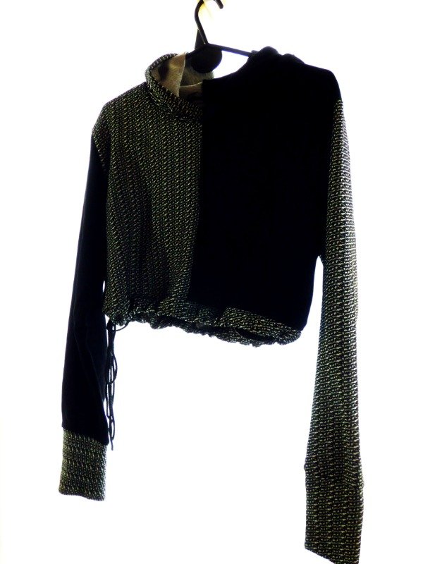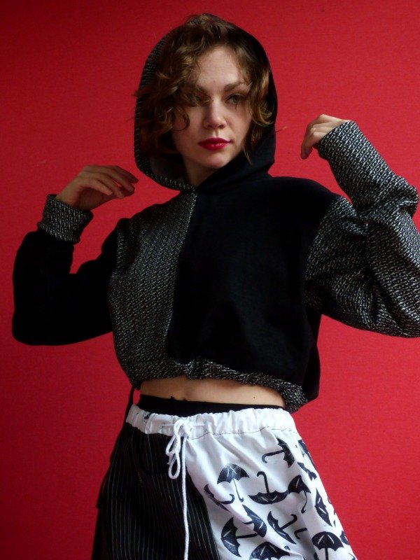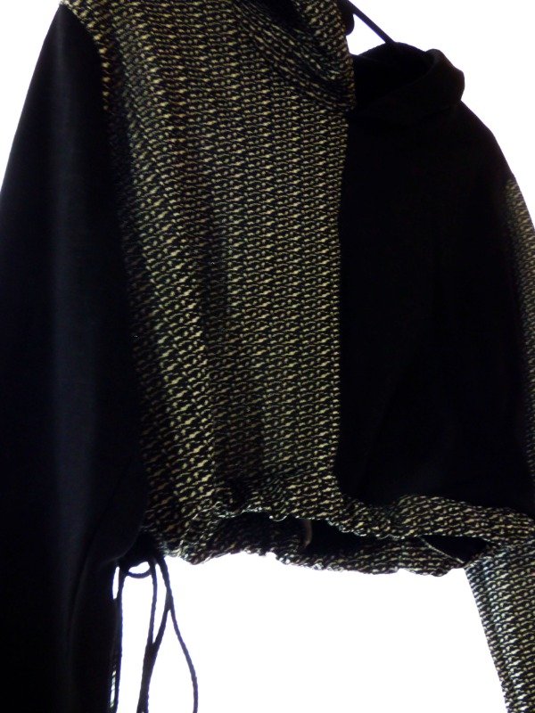 con capucha confeccionado en rustico: un lado liso y otro con textura e. Presenta manga larga , puños amplios con terminación elástica y ajuste con cordón en la cintura para regular el calce. Diseño bicolor, cómodo y con un estilo urbano contemporáneo.