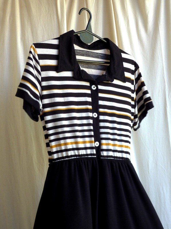 Lleva el encanto de los años 70 a tu armario diario con nuestro vestido de punto. Esta pieza combina la comodidad de una camiseta tipo polo con la feminidad de una falda con vuelo, creando un look equilibrado, dinámico y sofisticado.