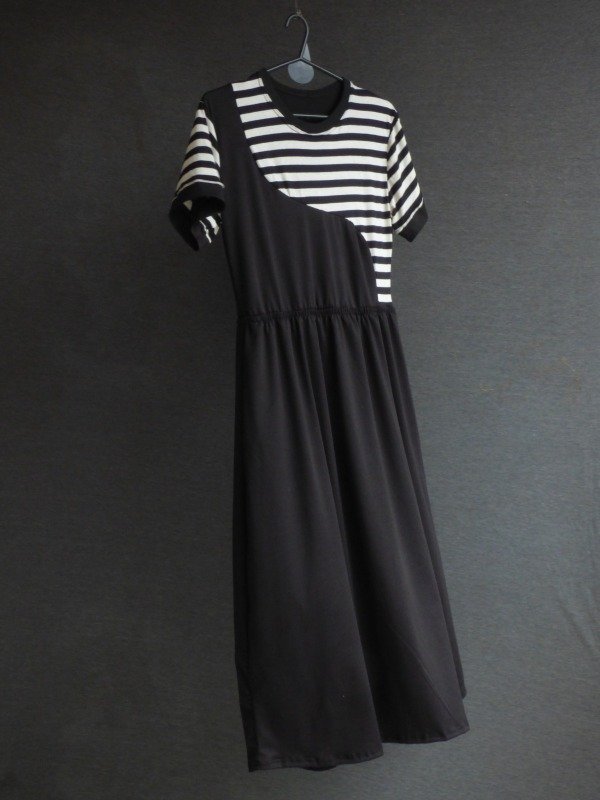 Vestido confeccionado en modal suave y liviano, con diseño en rayas en la parte superior y falda lisa. Lleva elástico en la cintura para un calce cómodo y favorecedor. Largo hasta el piso, ideal para un look relajado pero con personalidad
