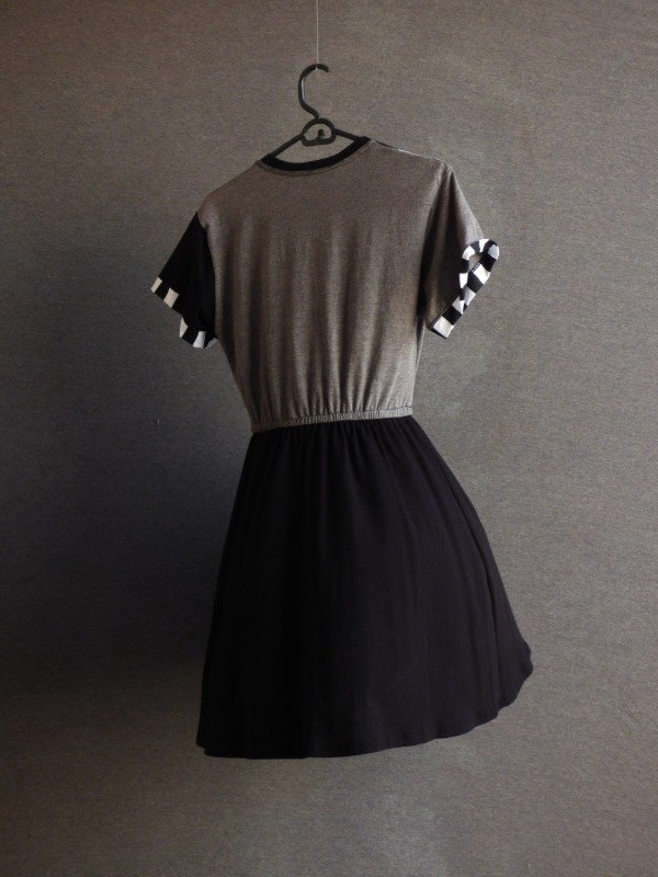 Burton gris: realizado en Modal , cuerpo delantero en tono gris combinado con rayas sutiles, cuello tipo remera ribb y manga corta. La cintura posee un elástico que define la silueta de manera cómoda, mientras que la falda en negro aporta contraste y movimiento. Diseño que combina confort y estilo casual, ideal para un look diario con un toque distintivo.